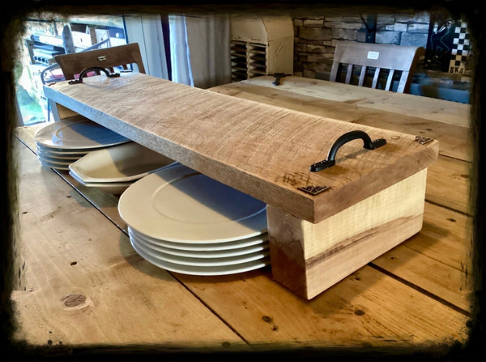 Reclaimed Solid Oak heavy table riser centrepiece kitchen space saver large dining room table