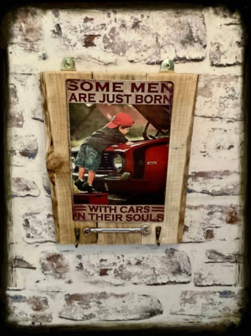 Some men are just born with cars in their souls wall hanging with 2 hooks