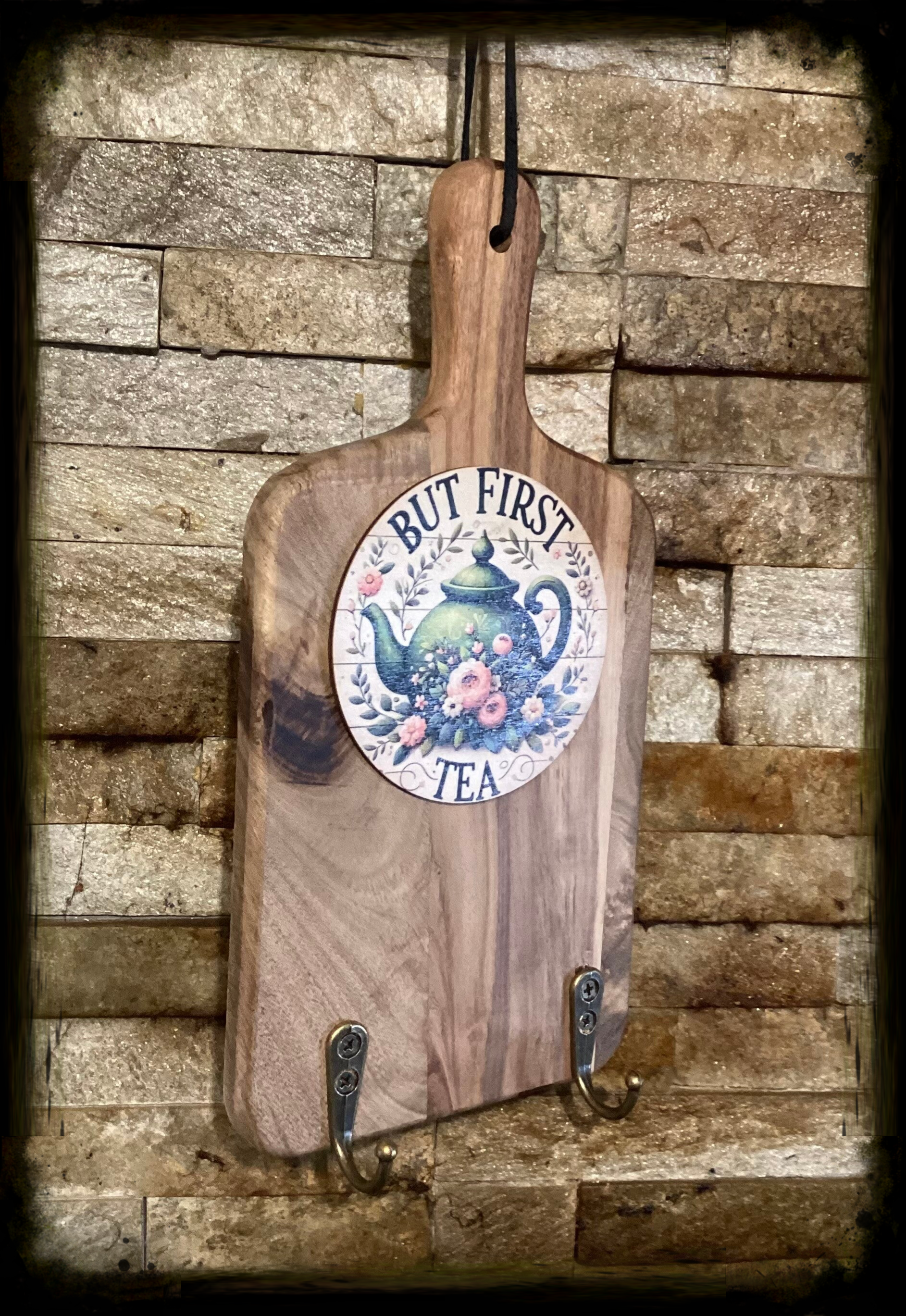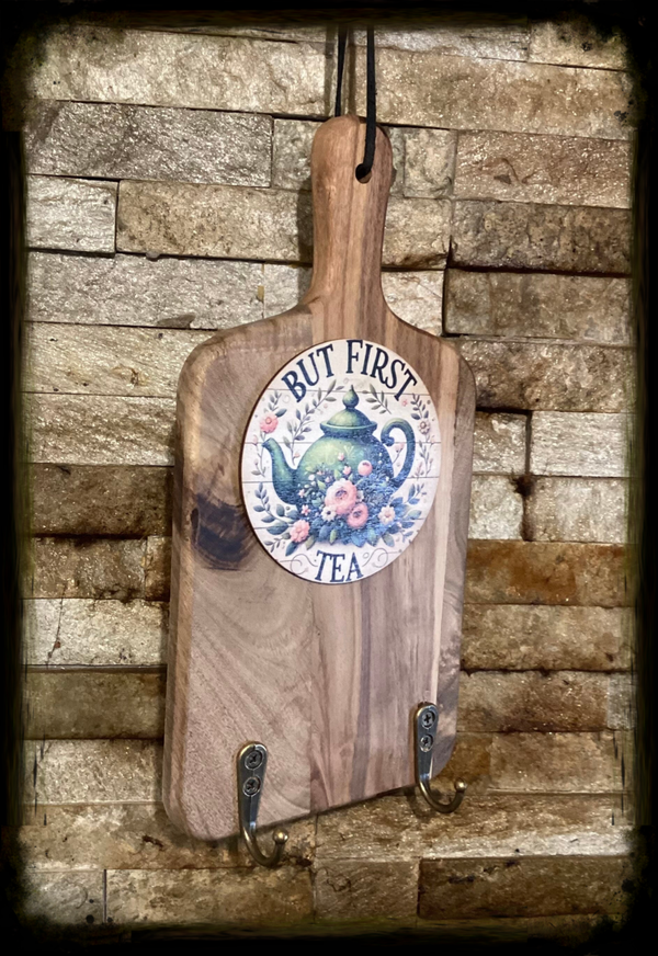 2 hook small kitchen hanger pot of tea decor ( Ht 28 cm W 14 cm ).