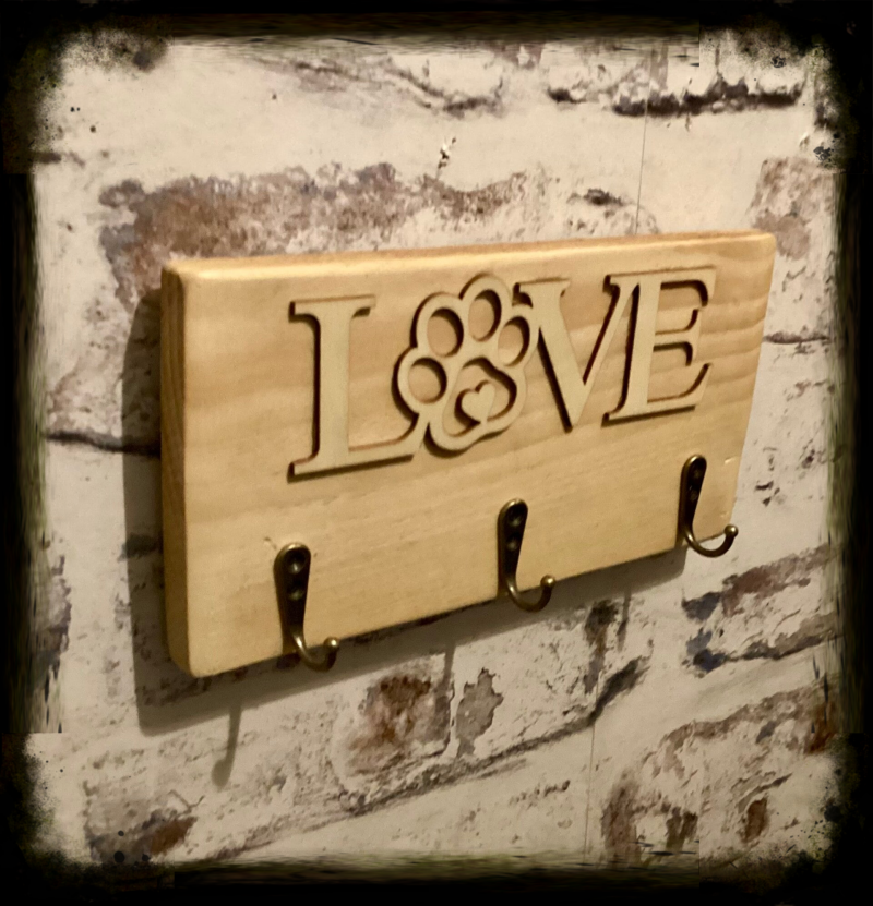 3 Hook Dog Lead Hanger with love paw print decor