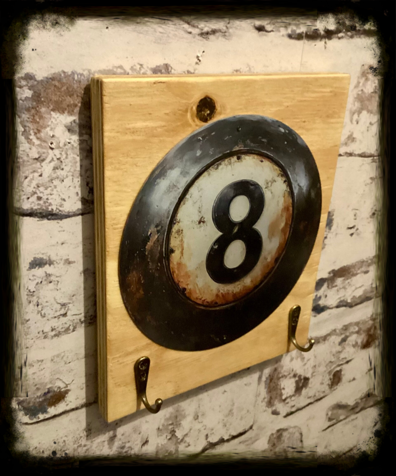 Rustic 2 hook wall hanging with 8 ball pool decor