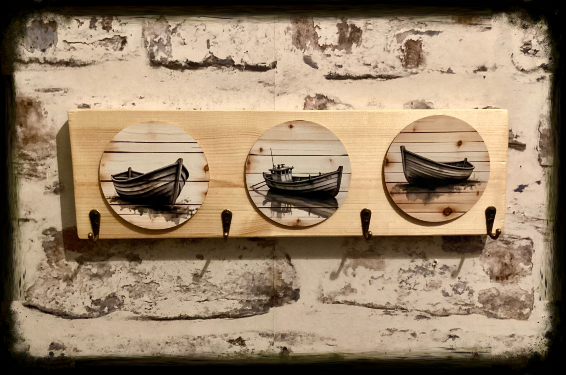 Rustic reclaimed wood 4 hook bathroom hanger