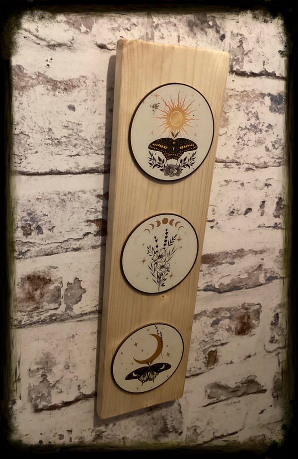 Rustic reclaimed wood sun and the moon wall hanging